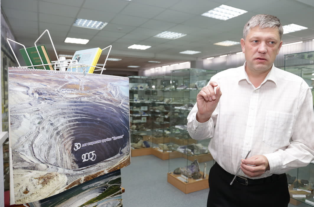 В музее ИЗК СО РАН сегодня действует большая экспозиция кимберлитов. Уникальную коллекцию подарил иркутским коллегам Джемс Ильич Саврасов, основатель единственного в мире музея кимберлитов в городе Мирном (Якутия). Подарок был сделан не случайно. Ведь иркутские учёные внесли огромный вклад в открытие алмазных месторождений Якутии. Среди образцов есть кимберлиты алмазных трубок «Зарница» (открыта в 1954 году), «Мир», «Удачная», «Маршрутная», рассказывает главный специалист геологического музея ИЗК.