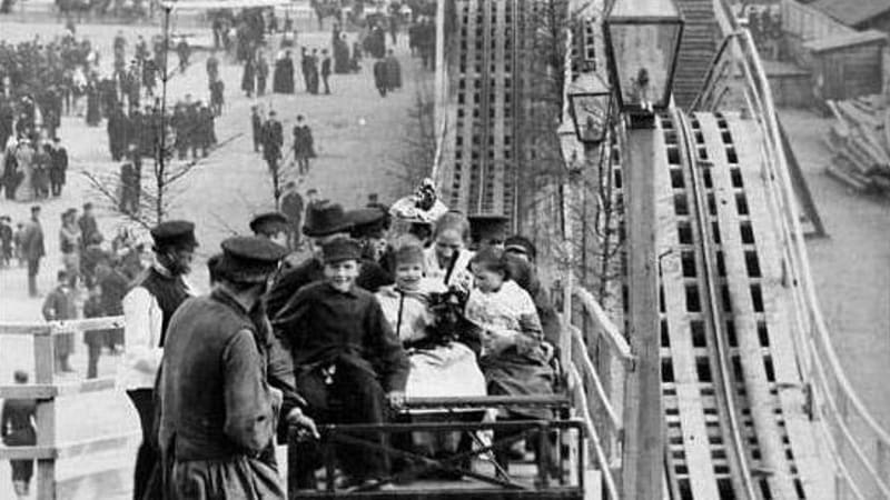 Деревянные рельсовые горки в Санкт-Петербурге. Аналогичные были построены в Иркутске в 1857 году
