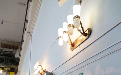 «А вот это наши светильники, им больше полувека», – рассказывают сотрудники Иркутской ГЭС, когда мы идём по машинному залу. Действительно, художественные бра очень красивы. Чувствуется сталинская роскошь, любовь к деталям. «Все подлинные, сохранились ещё с 50-х годов. Старались тогда ставить массивное, добротное, – продолжают сотрудники ГЭС. – В период последней реконструкции станции хотели эти светильники сменить на более современные, но Сергей Викторович Усов, бывший тогда директором, приказал не трогать их – всё-таки история. Решили заново отлить формы и оставить их такими, как были при Бочкине. И вот по сегодняшний день они работают».