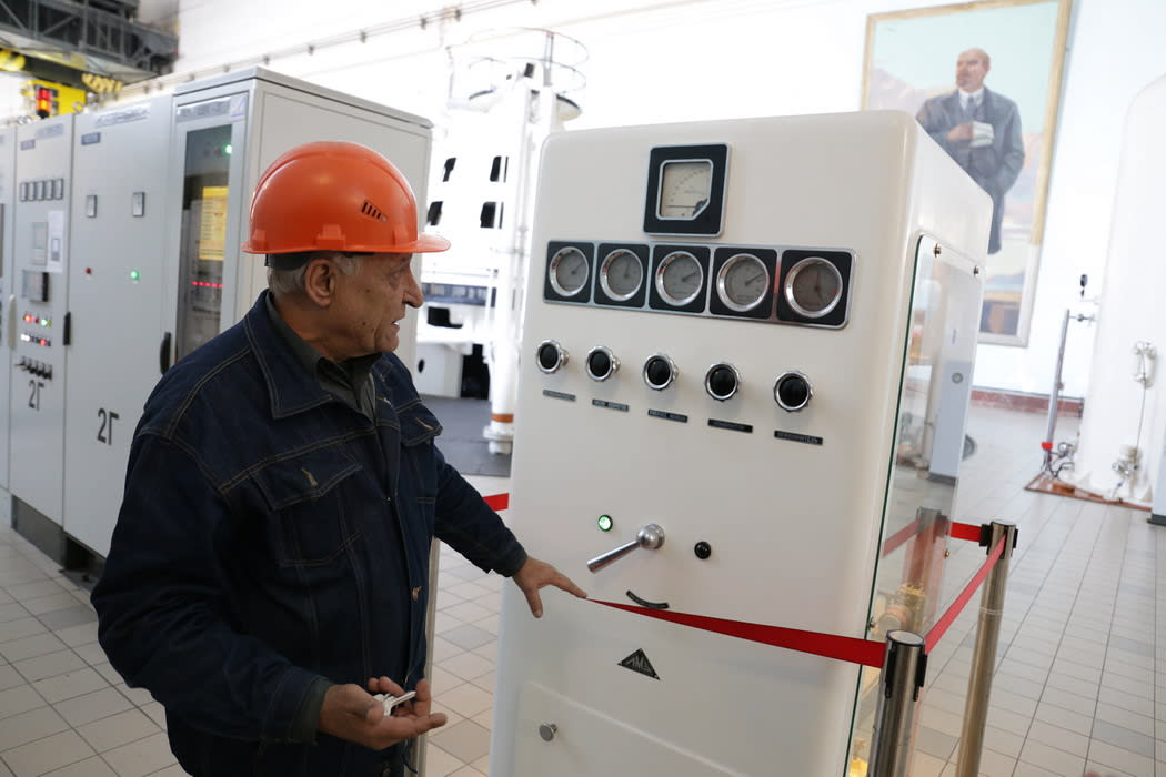 Есть на станции ещё один уникальный экспонат, находящийся прямо в машинном зале. Девять лет на ГЭС проходила реконструкция, модернизация, завершённая в 2015 году. В числе прочего под замену попали регуляторы скорости турбин. Тогда-то и было принято решение, чтобы один из старых регуляторов был сохранён прямо в машинном зале как экспонат. Железные двери были убраны, поставлены стёкла, получилась своеобразная музейная витрина. Всё внутри устройства привели в порядок, почистили, покрасили, сделали освещение. И теперь экскурсантам можно показать, как раньше выполнялся пуск турбины, как работал регулятор.