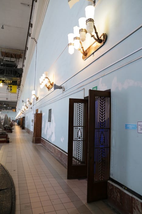 «А вот это наши светильники, им больше полувека», – рассказывают сотрудники Иркутской ГЭС, когда мы идём по машинному залу. Действительно, художественные бра очень красивы. Чувствуется сталинская роскошь, любовь к деталям. «Все подлинные, сохранились ещё с 50-х годов. Старались тогда ставить массивное, добротное, – продолжают сотрудники ГЭС. – В период последней реконструкции станции хотели эти светильники сменить на более современные, но Сергей Викторович Усов, бывший тогда директором, приказал не трогать их – всё-таки история. Решили заново отлить формы и оставить их такими, как были при Бочкине. И вот по сегодняшний день они работают».