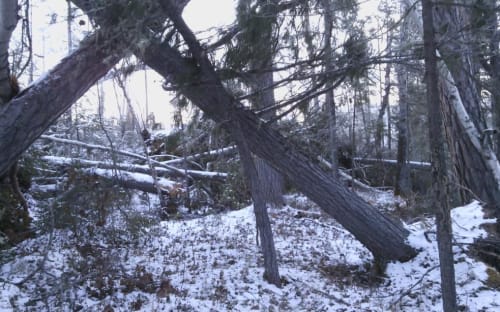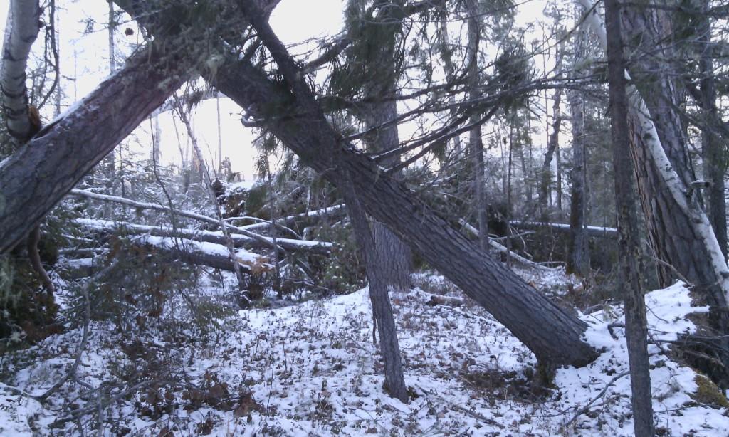 – Над лесом словно пролетел огромный космический корабль, и всё под ним легло, – Владимир Шкода, директор Центра защиты леса Иркутской области (филиал ФБУ «Рослесозащита»), делится впечатлениями очевидцев, прошедшими уже через несколько уст и, возможно, обросшими некоторыми фантастическими подробностями. Но мы рассматриваем фотографии последствий дурнопогодного кошмара, сделанные лесопатологами нынешней осенью в юго-восточной части Тайшетского лесничества, в Присаянье, у границы с Нижнеудинским районом. – Видите, первый снег уже был. Причём длилось это, как говорят, не более сорока секунд. Вот, пожалуйста, смотрите, какая площадь!
