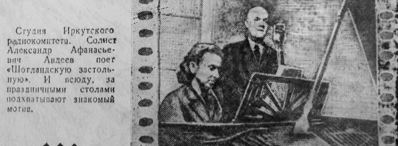 В Иркутске осталось не так много старожилов, способных вспомнить концерты военных и первых послевоенных лет, где выступал обладатель красивого баса Александр Афанасьевич Авдеев, разительно выделявшийся на фоне других местных певцов. В 2016 году исполнилось 125 лет со дня рождения этого незаурядного вокалиста, история жизни которого, несомненно, могла бы лечь в основу объёмного романа.