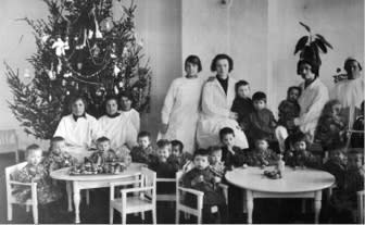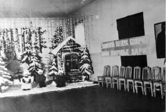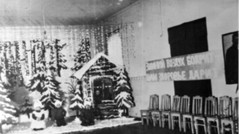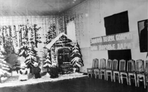 Ребятишки, укутанные в платки и шапочки, стоят в ледяном корабле, над ними развеваются флажки. На борту всамделишного судна надпись: «Челюскин». Эта постройка появилась в Иркутском детском саду № 2 в одну из довоенных зим. В 1930-х годах полярные экспедиции были чуть ли не главной темой. Папанину, возглавившему экспедицию на Северный полюс в 1937 году, с новогодней символикой повезло. Все мы знаем знаменитую ёлочную игрушку – папанинскую полярную станцию. А вот эпопея с «Челюскиным» пришлась на годы, когда официально Новый год в СССР был запрещён. Однако эта иркутская фотография уникальна. Она свидетель: даже во время запретов Новый год был, его праздновали. В эти дни в 130-м квартале, в детском музее, филиале краеведческого музея, выставлено не менее десятка уникальных новогодних фотографий и старинных ёлочных игрушек.