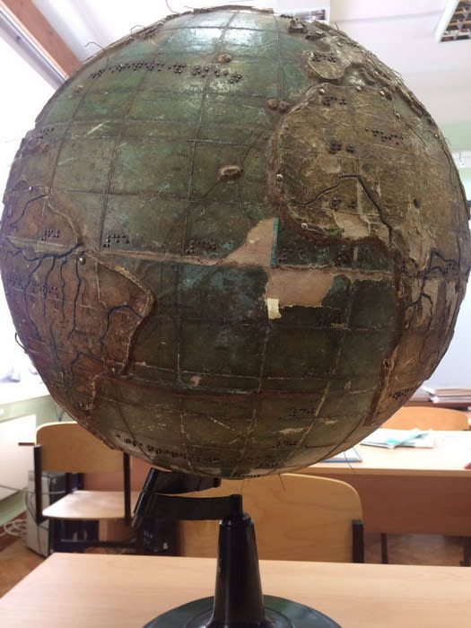 Старая модель земного шара, которая прослужила школьникам больше 50 лет, настолько износилась, что её пришлось убрать на дальнюю полку. О порывы и потёртости слепые дети могли поранить нежные подушечки пальцев. Тактильные поверхности – так эту часть руки, которая незрячим заменяет глаза, называют педагоги.