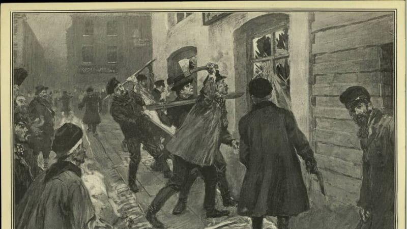 Как бы то ни было, уже к 10 часам утра толпа приступила к разгрому лавки Хахутова. Причём в «классическом» для начала погромов стиле – с порчей и уничтожением имущества, поисками подтверждений своим подозрениям, которые могли быть использованы в качестве оправдания для дальнейших самосудных действий.