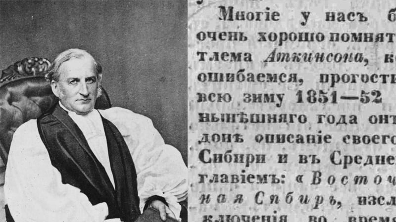 Английский путешественник, писатель, живописец в 1844 году предпринял путешествие через Урал к Алтаю. А в 1849–1852 годах сумел проникнуть в Монголию. Именно в этом путешествии он и остановился в Иркутске. В начале 1858 года в Лондоне он издал описание своего путешествия под названием «Восточная и Западная Сибирь, исследования и приключения во время семилетнего странствования по Сибири, Монголии, Киргизским степям и части Средней Азии». Интересно, что почти сразу после выхода книги Аткинсона в Лондоне, а именно в мае 1858 года, переведённые из неё отрывки уже печатались в «Иркутских губернских ведомостях». Восточной Сибири Аткинсон посвятил только последнюю главу книги, где путешественник упоминает Иркутск, описывая пространство от Семипалатинска до нашего города: «После переправы через Иртыш путешественнику, едущему по почтовой дороге в Иркутск, стоит не проспать только три станции, а там он преспокойно может предаваться сну до самого Иркутска и, приехавши, смело приниматься за описание всей страны – до того однообразен вид её. Где почва песчаная – там сосновые леса покрывают страну, где она болотиста – там растёт берёза». Англичанин Аткинсон, как писала газета «Сибирь» в 1878 году, сделал много пейзажей Восточной Сибири, лучшим из которых называли «Ангарские ворота». Сейчас известен его пейзаж «Black Ircout» («Тёмный Иркут»).