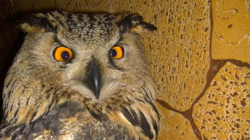 Филин по имени Вьюга – один из последних подранков, доставленных в Иркутский зоопарк. Птицу привезли истощённой, оголодавшей, практически высохшей, три дня она находилась под системами. Выяснилось, что у птицы гематома на груди, срезаны маховые перья на крыле, летать она не может. Филин был найден в огороде в деревне Горячий Ключ. Постепенно состояние Вьюги стабилизируется: повышается до нормы сахар крови, хорошо заработали почки и кишечник.
