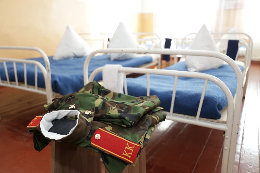 Он идёт через плац, и вместе с ним мы повторяем путь его ежеутреннего обхода территории кадетского корпуса. Сначала главный стратегический пункт – котельная, потом на выбор один из двух жилых корпусов, которые называют по цвету – «серый» и «красный». Проверка, как в армии: место дневального, чёткость подаваемых им команд при входе старшего по званию, качество заправки постели, порядок в душевой. Потом – учебный корпус, столовая, медчасть. Кадеты учатся, дежурные накрывают к обеду, в медчасти пусто. Порядок…