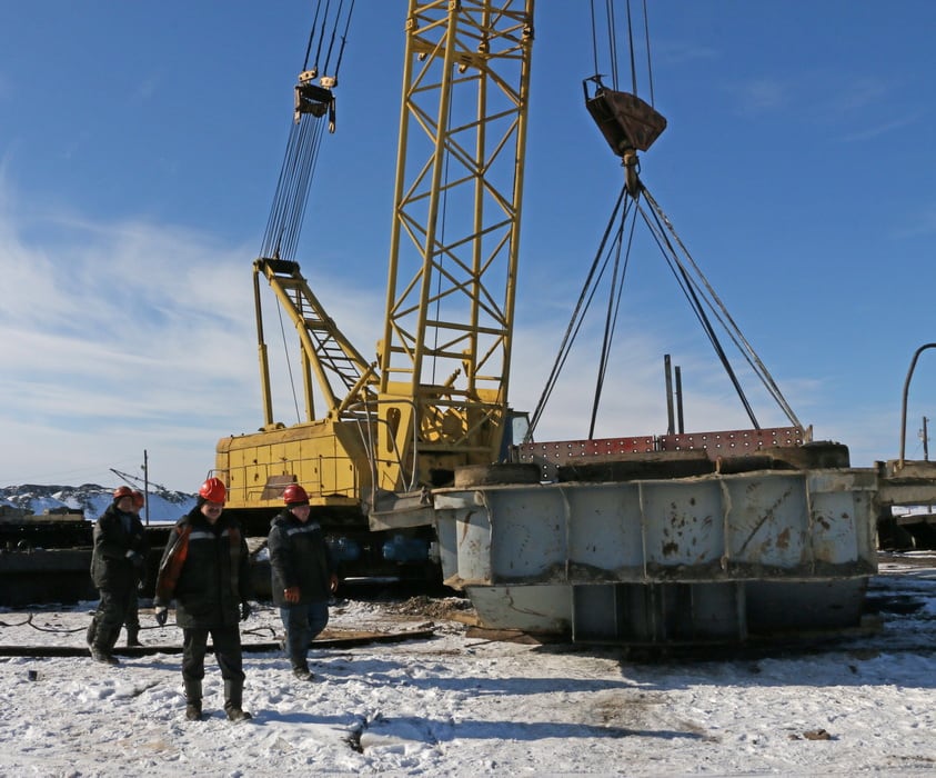 А на монтажной площадке между тем готовятся собирать стрелу. Перед сваркой отдельные её фрагменты соединяют сборочными пластинами, в которые вкручены болты. Варить металл начнут позже, когда установятся плюсовые температуры. «Даже не то что плюсовые – должно быть 15 градусов, – уточняет Кобелев. – Будет 10 – всё, уже работать нельзя. Но и тут есть выход – поставим палатки с обогревом. График выполнения монтажных работ не может зависеть от погодных условий, работы по монтажу должны быть завершены как можно быстрее. Ведь потребителям нужен уголь».