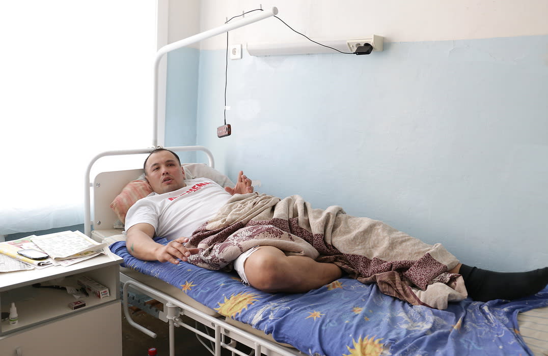 Анатолий Асалханов, весь в порезах, ушибах и ссадинах, обратился в больницу после восьми часов утра – он приехал с женой сам. У него диагностировали закрытую черепно-мозговую травму, сотрясение головного мозга и глубокие порезы обоих бёдер около восьми сантиметров каждый. Его госпитализировали в отделение травматологии, и в тот же день он написал заявление в полицию, потребовав, чтобы ему предоставили охрану. У его палаты поставили круглосуточный пост с двумя сотрудниками полиции. Однако, как заверяет главврач Анганаев, пациент из депутата получился не обременительный – он не требует к себе особого отношения, беспокойств персоналу не доставляет и даже охотно питается больничной едой:
