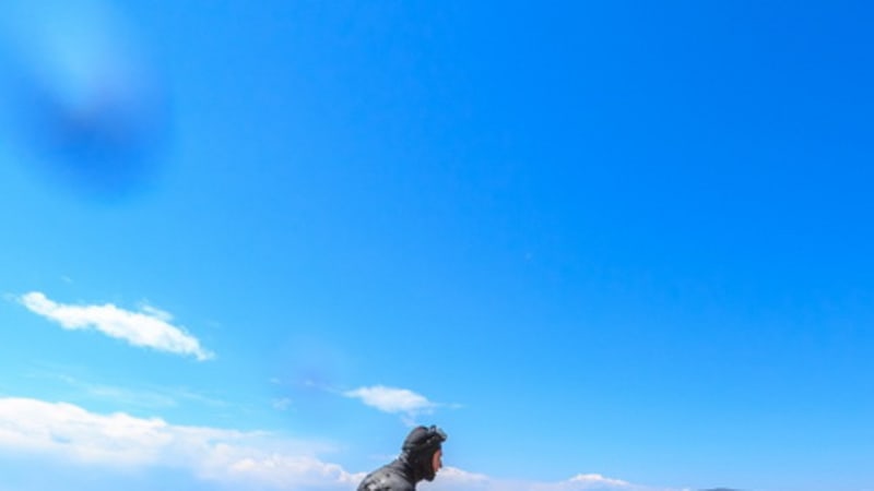 Дайверы отплыли на 30 метров от берега, там глубина составляет 25 метров. Температура воды – четыре градуса. Но погода помогает «уборке» на дне Байкала, солнце светит ярко, что даёт лучший обзор для борцов за чистоту.