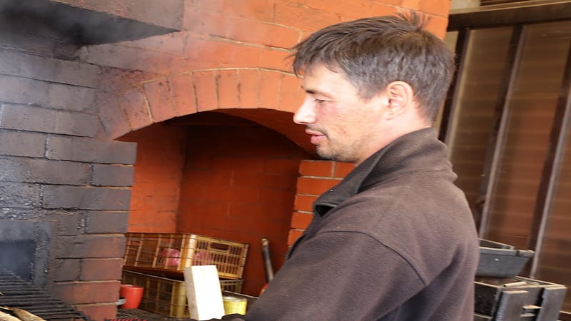 С хозяином ИП «Кирсанов» мы разговорились, привлечённые масштабами его производства: если в «дальних кварталах» Листвянки все коптят в железных «дымовухах», маленьких коптильнях, похожих на мангалы, то у него во дворе стоит здоровенная кирпичная печь-коптильня. Хозяин, как сталевар у «мартена», закладывал в огромную полость под самый верх решётку с омулем, любовно подкидывал в низ щепочки: