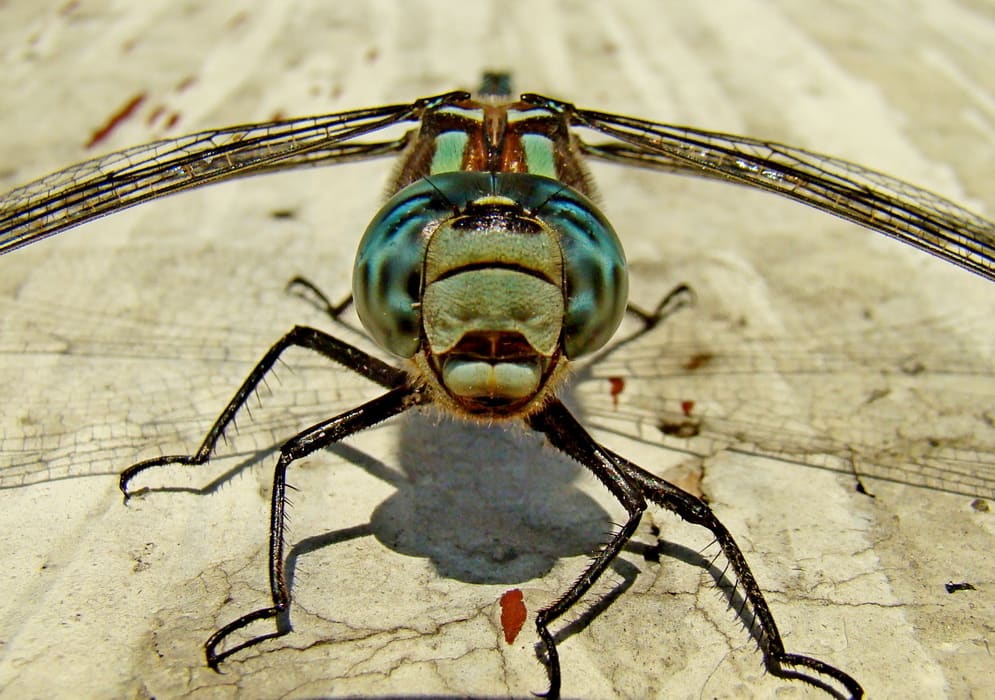 Первой ко мне прилетела стрекоза. Большая и синяя. Мы в детстве почему-то называли таких коромыслами. А повзрослев и прочитав о стрекозах чуть больше, чем требовала школьная программа, страшно удивился, что мы, оказывается, называли стрекоз коромыслами… правильно! Даже настоящие учёные их, оказывается, тоже коромыслами называют. Их, коромысловых стрекоз, есть целое семейство. А этот конкретный вид называется императором-дозорщиком и дозорщиком-повелителем. Красиво и гордо. Как в фэнтези про параллельные миры. Не побрезговал император, сел на обломок строительного мусора рядышком, на расстоянии вытянутой руки. Но так неудобно из-за навороченных глыб, что голой-то рукой дотянуться до него можно, а вот фотоаппаратом, да ещё так, чтобы на дисплее кадр было видно, не получается. Стал корячиться, извиваться – император даже улететь собрался. На всякий случай. Но потом догадался, что я хочу всего лишь портрет его сделать, и стал снисходительно чуть-чуть помогать. Не теряя своего стрекозиного достоинства. То одним боком повернётся к объективу, то – неспешно – другим. И, наконец, даже несколько своих стрекозиных шагов к объективу сделал. Думаю, не для меня, а чтобы собственное отражение в цейссовском стекле рассмотреть получше.
