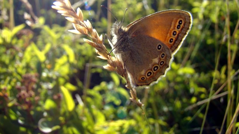 Бабочка маленькая, невзрачная вокруг меня уж несколько минут летает и садится на всякие травинки и цветочки поблизости. Вроде как сфотографироваться хочет. А что там фотографировать-то? Так себе, грязно-коричневый порхающий листочек… Но выпросила, вынудила. Поднёс я к ней объектив поближе, а на дисплее нежное, пушистое обаяние. Цвета неброские, но достаточно яркие и мягкие одновременно. Так понравилась мне крохотуля, что встал я перед ней на колени, чтобы снимать удобнее было. Понимаю теперь, что не всякая красота издалека в глаза бросается. Даже мухи тому пример. Их много разных, но пока вокруг летают – все кажутся неприятными. А поближе посмотришь, да если ещё на цветке красивом – такая замечательная композиция получается.
