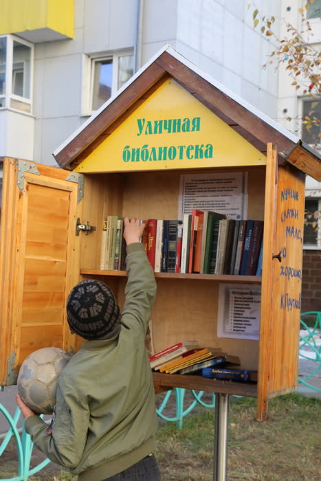 Вдоль детских площадок установлены необычной формы деревянные скамейки – загнутые, под наклоном, с забавными надписями. Они органично вписываются в игровое пространство. На фасаде дома большие счёты для малышей, школьная доска с мелками. Удивительно, что все игрушки выглядят как новые, хотя находятся здесь не первый сезон. На школьной доске даже аккуратно висит чистая ветошь для вытирания. «Жильцы здесь привыкли к такому обустройству, дети растут в правильной обстановке, ценят её», – поясняет Наталья Ленская.