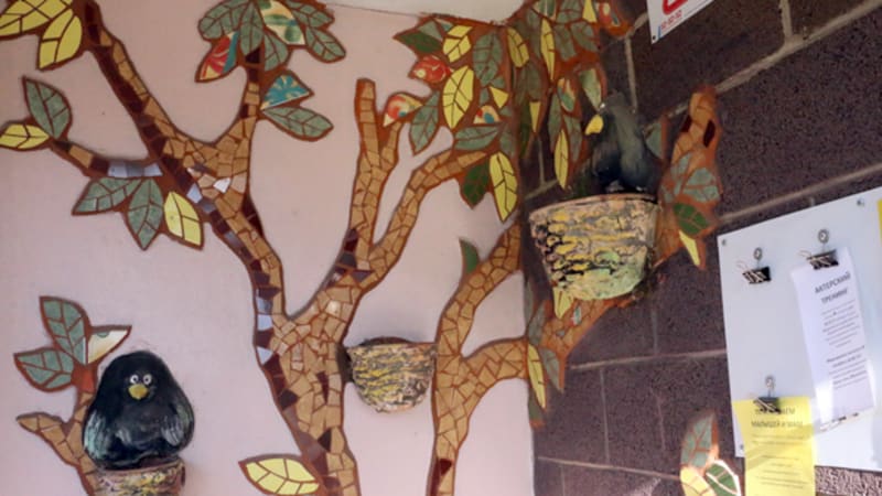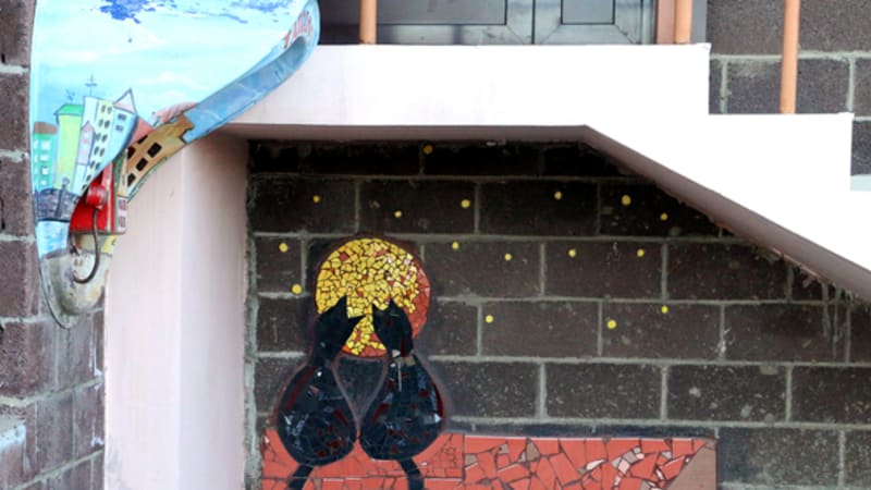 Наталья уже почти 10 лет сотрудничает с этой управляющей компанией, тесное знакомство произошло, когда компанию возглавляла Светлана Ткаченко. «Моя школа дизайна «Какаду» на выставке представляла свои работы. К нам подошла Светлана Юрьевна и предложила сотрудничать. Первый дом, который мы украсили мозаикой, находится на Лызина», – вспоминает Наталья Ленская. Сегодня с ней советуются даже при выборе цветов для покраски подъездов. «В старой многоэтажке, где живёт моя мама, ярко-оранжевые полы и ядовито-зелёные стены. Всегда захожу в подъезд и ужасаюсь: какой вкус должен быть, чтобы подобрать такое сочетание», – смеётся Наталья и провожает нас к двери управляющей компании. Отсюда и начинается наша экскурсия.