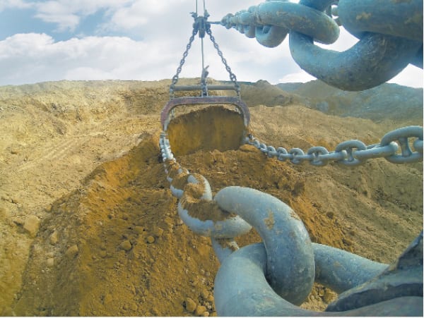Для наращивания добычи нужно увеличить объём вскрыши – выемки горных пород, под которыми залегают пласты угля. ЭШ 20/90 способен за год переэкскавировать до 4 млн тонн. Сколько это будет в кубометрах, зависит от состава пород, который на Головинском месторождении не однороден. Например, в той рабочей траншее, по которой сейчас идёт «пятьдесят третий», они относятся к пятой-шестой категориям твёрдости. По сути, это скала, которую приходится взрывать, прежде чем в дело вступит «шагарь». Коэффициент вскрыши на этом участке составляет шесть к одному: чтобы извлечь тонну угля, нужно произвести экскавацию шести кубометров породы. Объёмное его значение, если удобно, можно перевести в линейное: пятиметровая пачка угля залегает под тридцатиметровой толщей. Мощность породы на третьем участке колеблется от 25 до 35 м, ЭШ 20/90 по техпаспорту способен проводить вскрышу на глубине до 42,5 м.