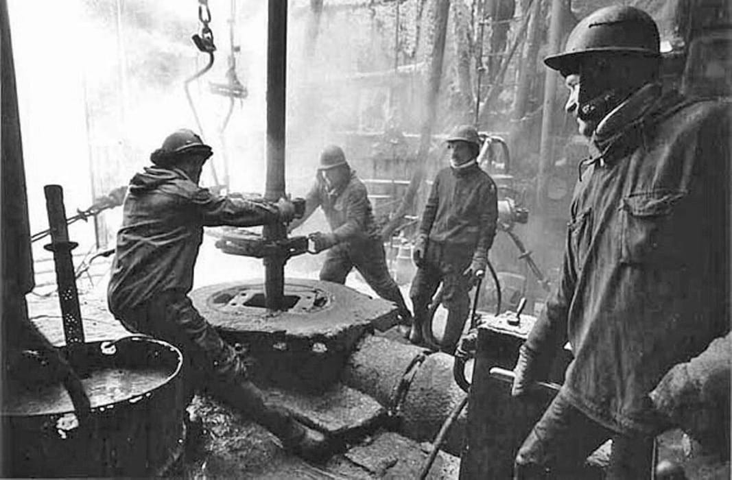 Приехали испытатели, чтобы сделать замеры и сообщить в трест о том, сколько идёт нефти, промышленная ли она.