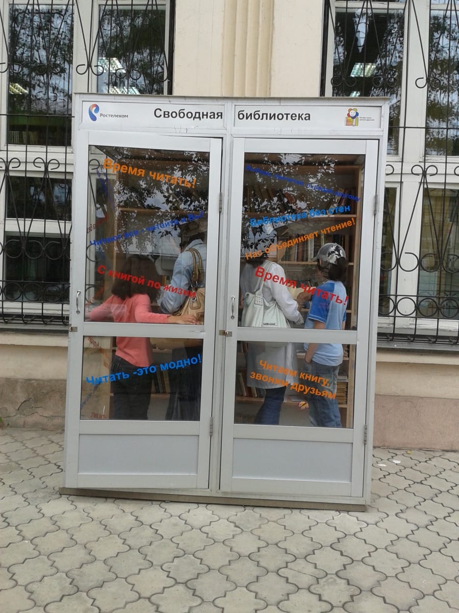 В декабре 2012 года «Ростелеком» и Иркутская областная детская библиотека им. Марка Сергеева открыли первую уличную мини-библиотеку свободного чтения. Библиотека разместилась в таксофонной будке, где любой житель может взять книгу, оставить прочитанную или обменять одну на другую.