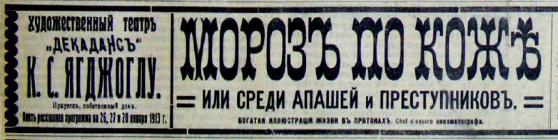 «Морозы с дымом» – так называли сильные холода в Иркутске до революции. Обычно в наших краях сильно примораживать начинало с ноября, когда Ангара ещё не вставала. Река парила, и морозы превращали Иркутск в город-призрак. Люди передвигались в сплошном тумане, выныривая из него и исчезая снова, как вестники потустороннего мира. Мороз менял планы целого города, причём произойти это могло в любой момент с ноября по февраль. Из-за сильных морозов отменялись народные чтения, срывались гонки на детском катке. В январе 1901 года премьера оперы «Фауст» в городском театре прошла при пустом зале. В театре было очень холодно, и население ворчало, что дирекция экономит на дровах в самый важный момент – когда ртуть в термометрах застыла. Мороз заставлял публиковать распоряжения такого характера: «Оркестр на Детской площадке при морозе свыше 20 градусов играть не будет». В ноябре 1910 года в Иркутске отменили парад войск по случаю дня рождения императрицы Марии Фёдоровны. Причина та же – сильный мороз в 30 градусов по шкале Реомюра. Надо сказать, что шкалы Реомюра и Цельсия отличны. Если в газете давалось объявление, что на улице 30 градусов по Реомюру, то в пересчёте это было 37,5 градуса по Цельсию.