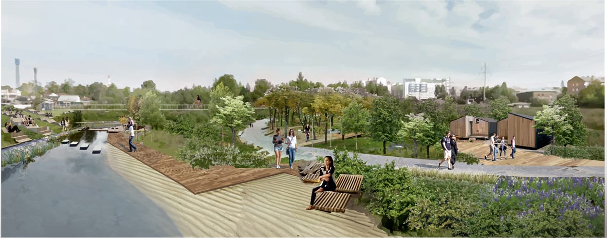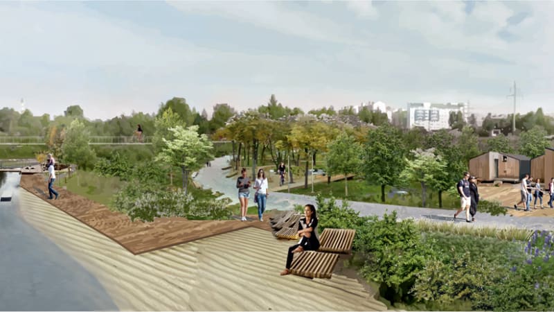 Проектировщики проанализировали, как уже сегодня используется территория, чтобы сохранить и усилить преимущества и убрать негативные факторы. Местные жители зимой ходят по руслу реки на лыжах, выгуливают собак, летом устраивают пикники у воды. Всё это в парке будет сохранено. Пикниковая зона, прокат, беседки, сухой пляж, спортивные локации, детские городки, дорожки в отсеве с лавочками и освещение – это то, чем наполнится будущий парк. Правда, сейчас на берегу можно встретить и нетрезвую компанию, от которой хорошего ждать не приходится. Но опыт подсказывает: как только территория благоустраивается и становится более популярной, маргинальная публика уходит сама собой.
