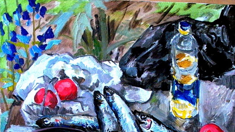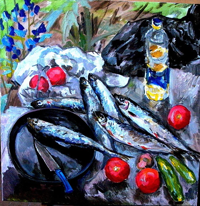 Одно из байкальских чудес – омуль. Лев Борисович нарисовал несколько натюрмортов с омулем.