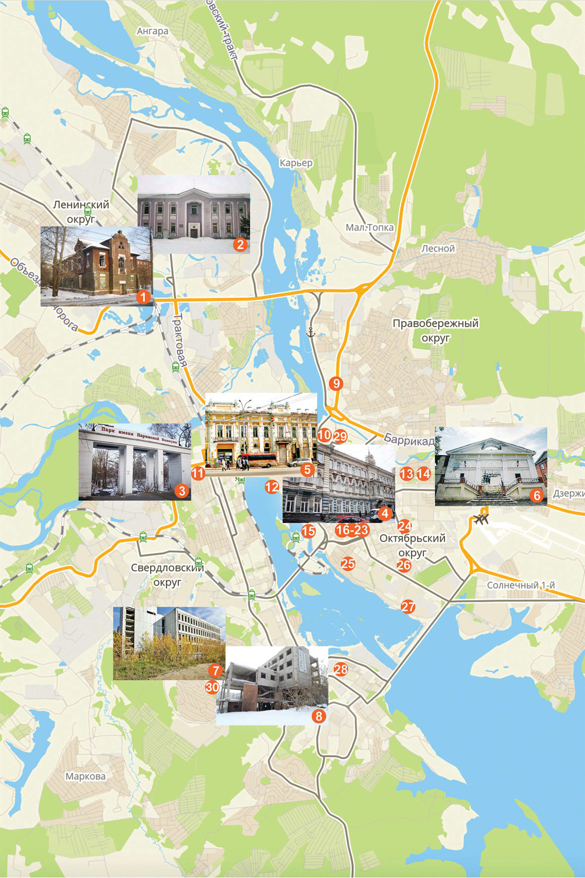 3. Парк имени Парижской коммуны, перекрёсток ул. Маяковского и ул. 2-й Железнодорожной.