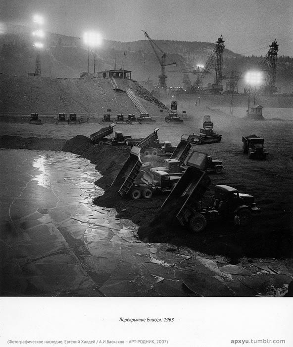Газетам Иркутской области в 1963 году хватало материалов о строительстве гидроэлектростанций в регионе: возведение Братской ГЭС ещё не завершили, в створе Усть-Илимской шли подготовительные работы. Но сообщения ТАСС о том, что происходило в соседнем Красноярском крае, в них всё же мелькали. «Восточно-Сибирская правда», например, 14 марта опубликовала новость телеграфного агентства о подготовке к перекрытию Енисея. «Круглые сутки у Дивных гор гудят самосвалы, рокочут экскаваторы, мощные взрывы крушат древний гранит, – начиналась она. – Работы на строительстве Красноярской ГЭС идут с опережением графика. Через полмесяца Енисей потечёт по искусственному руслу». Андрей Бочкин, который возглавлял строительство самой мощной на тот момент станции в стране, рассказывал ТАСС, что «перекрытие большой реки в зимних условиях – дело во многом новое, но оно имеет свои преимущества».