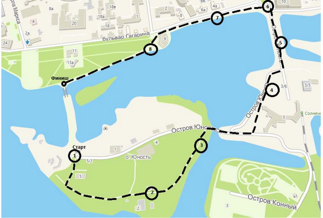 1 этап – старт на острове Юность от танцевальной площадки (370 м).