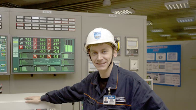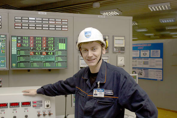 – На многих станциях существует разделение на котельный и турбинный цеха, – говорит машинист центрального теплового щита управления котлами Усть-Илимской ТЭЦ Евгений Тарасов, когда мы заходим в огромное – 350 метров между торцами – шумное помещение. – У нас цех совмещённый, поэтому и называется котлотурбинным.