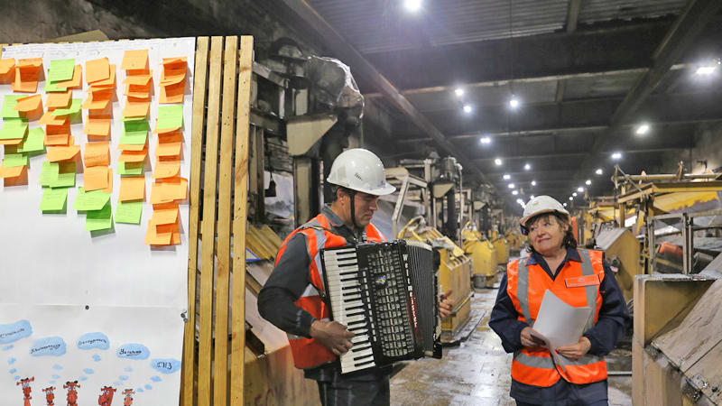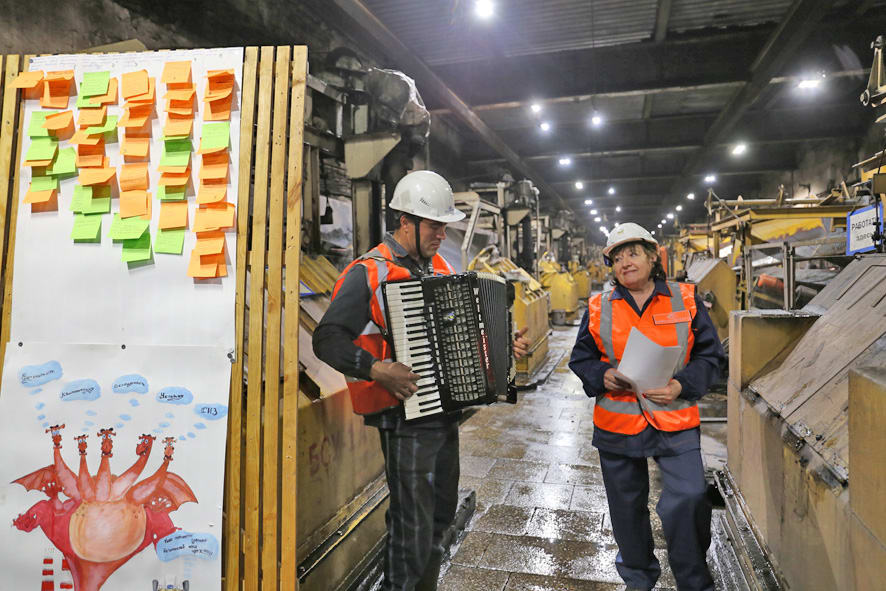 Топливно-транспортный цех сделал ставку не столько на количество улучшений в области охраны труда, сколько на их подачу – у конвейера, по которому идёт уголь, комиссию встречают частушками под аккомпанемент аккордеона. Смысл тот же, что и у стендов или наглядной агитации: «Вижу в цехе нарушенье – срочно сделал сообщенье. Вот он, злостный нарушитель, – должен знать руководитель».