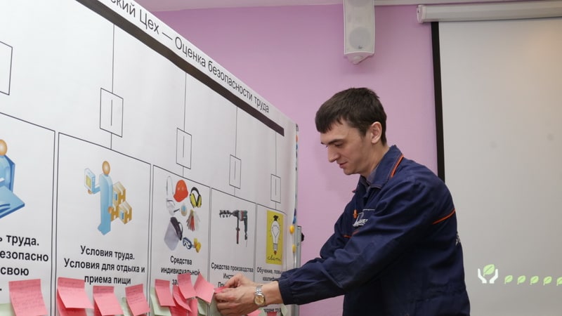 Для обратной связи внедрили стенд, на котором работник может оставить замечания касательно улучшений в области охраны труда. Он разделён на пять ячеек – в соответствии с направлениями охраны труда. Для наглядности в каждой из них можно наклеить канцелярский стикер: красный – для критических замечаний, зелёный – для положительных отзывов.