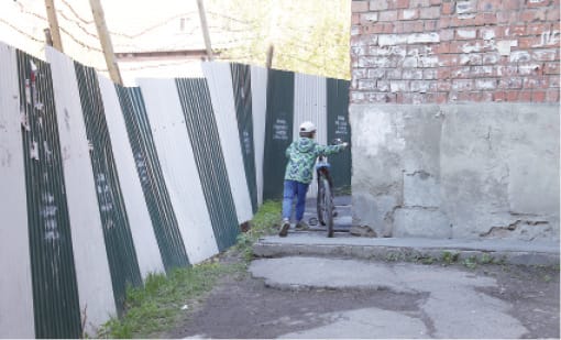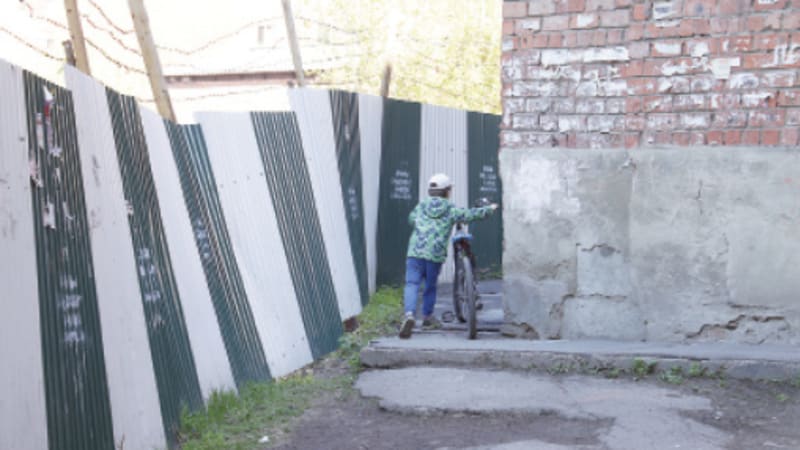 – Нашему ТОСу пять лет, всё это время мы обращаемся к властям с просьбой помочь нам в благоустройстве, – рассказывает руководитель ТОСа Алексей Попов. – Посмотрите: у нас нет ни кустарников, ни здоровых деревьев, ни лавочек, ни детских и спортивных площадок. Мой ребёнок ходит играть в соседний двор, вид на который закрывает вот этот забор с колючей проволокой. Писали заявления, жалобы – всё без толку. Этой весной нам, как ТОСу, предложили взять саженцы – мы бы и рады, но посадить их некуда.