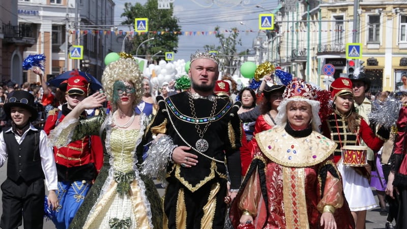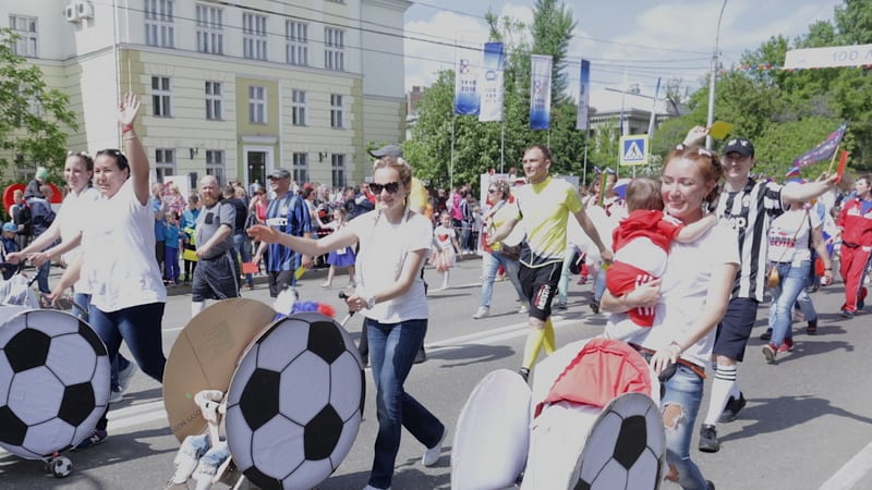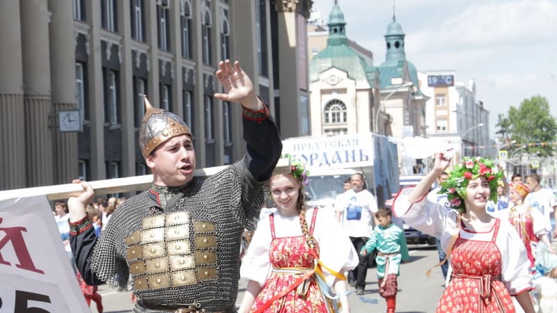 Участниками и зрителями девятого праздничного шествия в День города стали около 30 тысяч человек. 125 колонн прошли 2,5 км по улице Карла Маркса. Шествие возглавил мэр города Дмитрий Бердников,