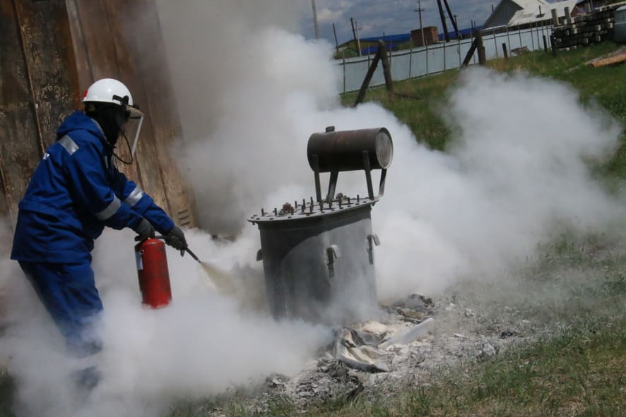 Параллельно бригады тушили пожар на подстанции. Норматив пожаротушения, на которое отведена, казалось бы, всего одна минута, сотрудники ИЭСК выполняли за 20–30 секунд. По легенде, пожар вспыхнул на действующей трансформаторной подстанции, которая питает электроэнергией целый жилой район. Едкий дым и сильный огонь – ситуация критическая. Не дожидаясь приезда огнеборцев, энергетики тушат условное возгорание сами – за считанные секунды.