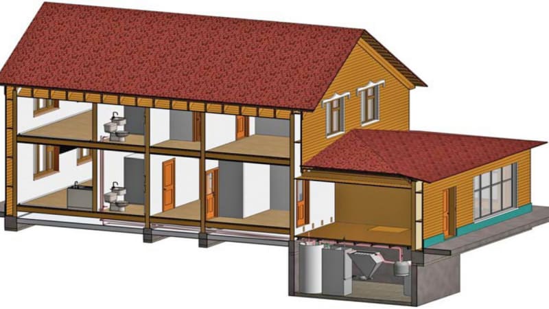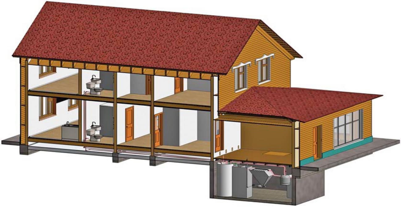 Главная «изюминка» дома – это очистные сооружения, на выходе из которых получается практически питьевая вода. Органика из туалета и душа попадает в сепаратор, который её сильно измельчает, затем в усреднитель. Туда же по капле отправляется мыльная вода из стиральной машины, которая сначала скапливается в отдельном баке. «Сразу её сливать нельзя, иначе она начнёт угнетать содержащиеся там бактерии», – поясняет учёный.