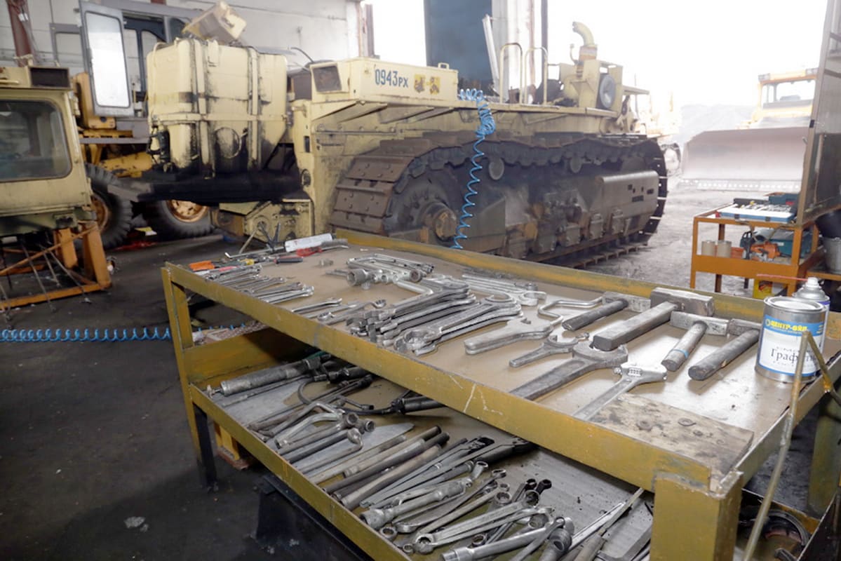 «Представьте себе: или я ключом вручную гайки кручу, или пневмоинструментом, – объясняет машинист бульдозеров Владимир Шипунов. – Времени уходит значительно меньше». Примером служит одна из машин, которую загнали в бокс за день до нашего приезда на станцию. С тяжёлого – 42 тонны полной массы – бульдозера Т-330 сняли отвал, кабину, гидроцилиндры, прикрывающие двигатель кожухи и более мелкие детали. Обычно на это уходит три-четыре дня, но на этот раз справились за один неполный день. Во многом это заслуга пневматического гайковёрта – небольшой машинки на длинном гибком шланге, который позволяет подойти к «Триста тридцатому» с любой стороны, не перетаскивая компрессор. Но сказывается и раскладка обычных инструментов по системе 5С – сортировка, соблюдение порядка, содержание в чистоте, стандартизация, совершенствование. Ключи, молотки и тому подобное разложены на рабочем столе по ранжиру, так что поиски нужного занимают несколько секунд.