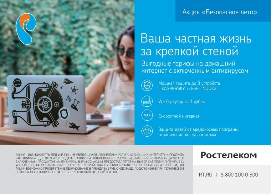 В Сибири продолжается акция «Ростелекома» «Безопасное лето». Компания предлагает новым абонентам подключить «Домашний интернет» и «Антивирус» в
