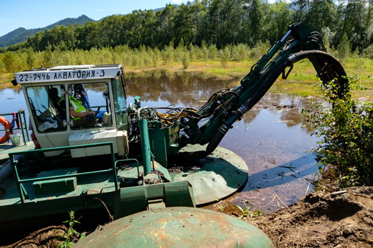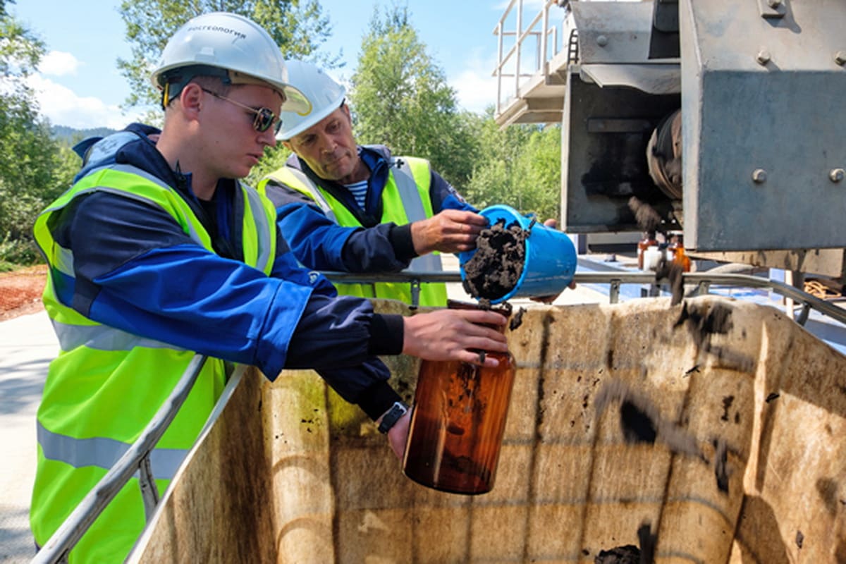 В конце июля возле шламонакопителей появился комплекс оборудования, а в карты «запустили» земснаряд-амфибию. «Наша задача – в разных местах карты отобрать шлам-лигнин, обезводить его и понять, что будет на выходе, – поясняет Полтавский. – В картах отходы по составу разные. Я уверен, на четвёртой карте результат будет отличаться от того, что получится на третьей. Так же на пятой, шестой и седьмой, куда кроме лигнина добавлялась ещё и зола».