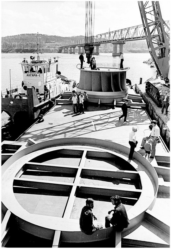 Через пять дней последовало новое сообщение, опубликованное уже на первой полосе. «Вчера крановщик управления механизации строительства Усть-Илимской ГЭС Ю. Иванов со своими помощниками Ф. Гариповым и Б. Косяковым на новом причале в нижнем бьефе Усть-Илимской ГЭС произвели сложную операцию – разгрузку рабочего колеса турбины весом в 78,7 тонны, – рассказывал в нём Шафрановский. – Накануне вечером к причалу подошёл караван судов Енисейского речного пароходства. Буксиры «Снежногорск» и МБВ-233 привели в Усть-Илим специально оборудованную баржу с рабочим колесом первого пускового агрегата. Почти месяц пробыло оно в пути, преодолев огромное расстояние от Ленинграда до Толстого мыса».