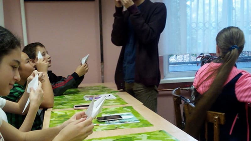 После интервью Абэ Кодай провёл мастер-класс по изготовлению бумажных журавлей и среди юнкоров. В России хорошо известна история о девочке, заболевшей после взрыва атомной бомбы и сделавшей 1000 бумажных журавликов, чтобы выжить. «Поэтому журавлик является символом мира. Каждый японец умеет их делать», – рассказал Абэ Кодай, помогая студийцам. В итоге у каждого получился прекрасный сувенир на память.
