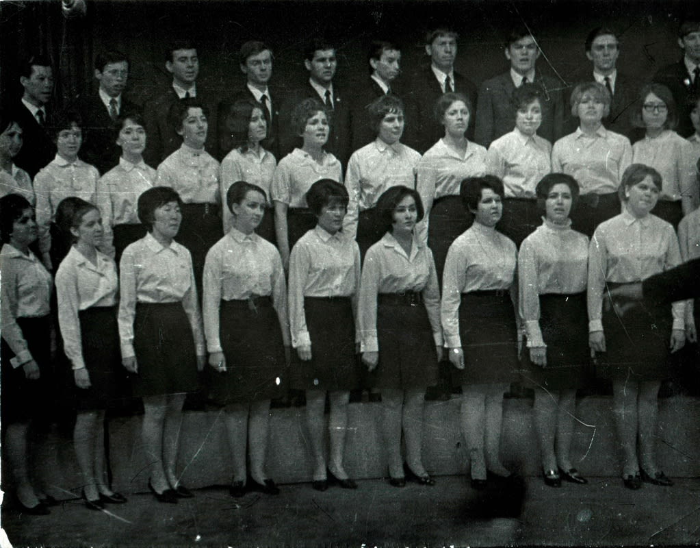 Впечатлений память сохранила массу. Прежде всего это поездки; набьёмся в одно купе и поём. Как мы ездили в самые отдалённые деревни области, в Чуну, например. Или как ездили в Германию. Когда Анатолий Кузьмич заболел, он всё равно приходил на репетиции, но уже не мог стоять, сидел. Но, стоило ему сделать жест рукой – на фортиссимо, хор моментально реагировал, ревел.