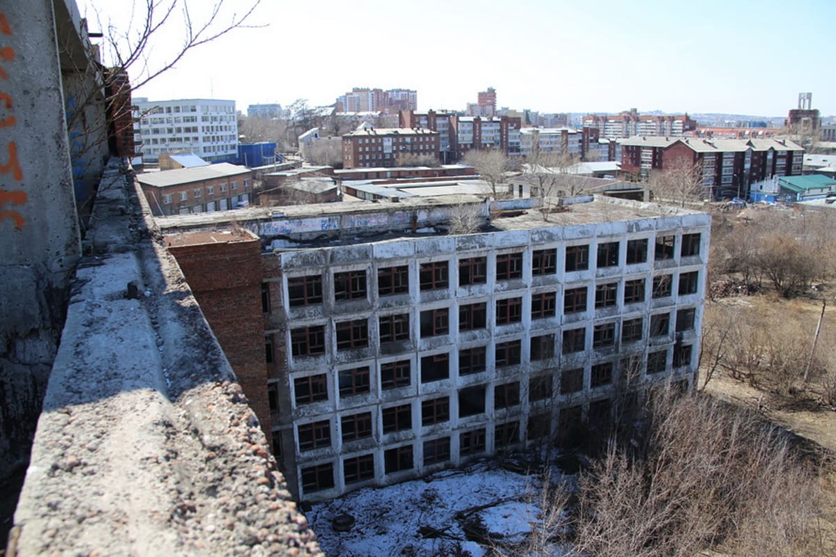 Заброшенный недострой на улице Красноказачьей, 23а, стоял никому не нужным целых двадцать лет. В 1990-х годах Министерство обороны начало здесь строительство картографической фабрики, но не довело дело до конца. Четыре года назад объект вместе с участком наконец был передан на баланс Иркутской области. И правительство губернатора Левченко решило достроить объект и разместить в нём некоторые правительственные службы.