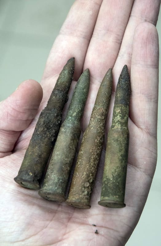 История известна, но важна не столько она, сколько её живые свидетельства, которые поисковики до сих пор находят на местах боёв. В августе 2018 года иркутяне, приехавшие на «Вахту памяти», работали с местными поисковиками на берегах Тулоксы, которую также форсировала 114-я стрелковая дивизия, и в районе Ильинского погоста и Видлицы. То есть не только на севере Ленинградской области, но и на юге Карелии. «Основная цель была в том, чтобы поработать по сорок первому году на Тулоксе», – отмечает Трофименко. Однако в тех же местах бои шли в 1944 году, так что поисковикам попадались артефакты разных лет. Мой собеседник демонстрирует гильзы и целые патроны калибра 9х19 Парабеллум, под которые были сделаны пистолет «Лахти» и пистолет-пулемёт «Суоми», состоявшие на вооружении финской армии. Первые остались от боёв 1941 года, вторые – от действий 1944-го. Среди находок есть и патроны 7,62х54 R, выпущенные на финском государственном заводе VPT, – такие же, если не считать капсюля другого типа, как боеприпасы для трёхлинейной винтовки системы Мосина. «Не потому, что использовалось трофейное оружие, а потому, что Финляндия до 1917 года была частью Российской Империи, – объясняет Трофименко. – Винтовочные патроны абсолютно одинаковые и взаимозаменяемые. Дошло до того, что финны, захватив в Зимней войне и в 1941 году советские ручные пулемёты ДП (Дегтярёва пехотный. – Авт.), сняли с производства свои пулемёты «Лахти – Салоранта», которые были сложнее и дороже».