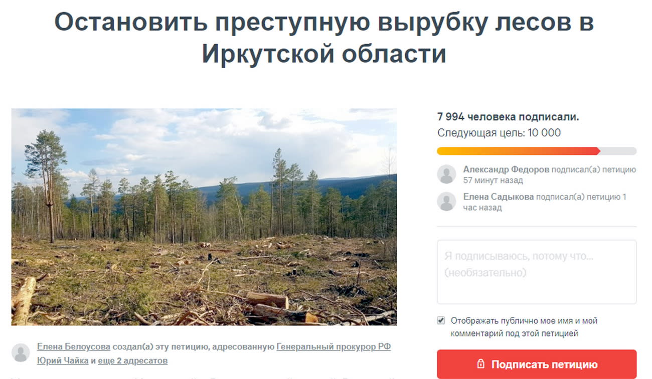 – Мы наблюдаем совершенно открытое противодействие со стороны министерства лесного комплекса Иркутской области. Угроз не было, а попытки подкупа исключает наша репутация.