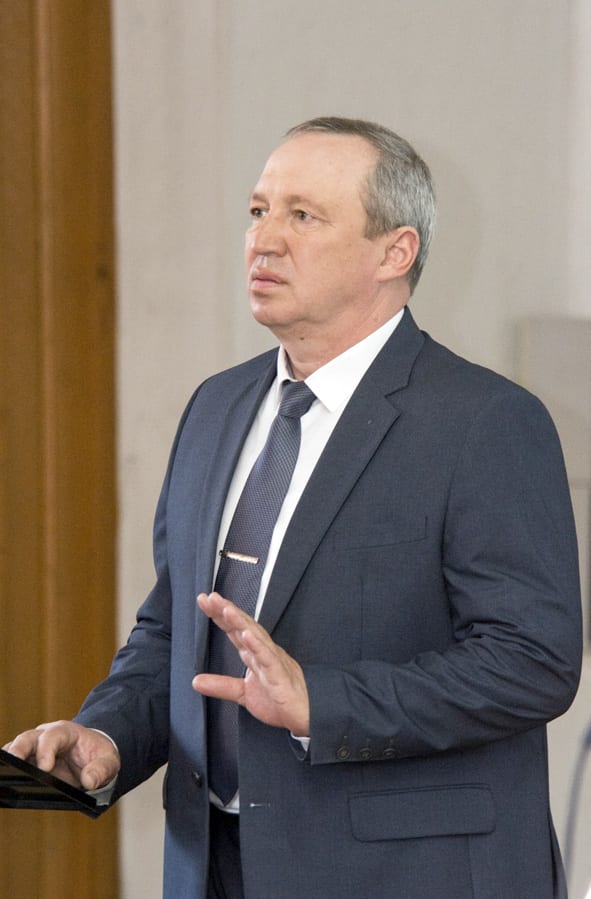 Из зала в ответ звучат выкрики. Суть претензий сводится к малому размеру помещения и к тому, что на задних рядах плохо слышно выступающих. «Может, слушания закрыть и вынести их на более комфортную площадь? – громко поинтересовался кто-то. – Потому что народ совсем ничего не слышит. Потому что это издевательство опять над народом». Предложение встречают довольно жидкими аплодисментами. «Уважаемые участники слушаний, если мы все будем вести себя нормально, не будем шуметь, то мы друг друга будем слышать», – вступил глава администрации Байкальска Василий Темгеневский. Пытаясь на какое-то время занять толпу, мэр города вспомнил историю с заводом в Култуке и начал рассуждать о том, что людям не следует невольно участвовать в «организованной акции в части формирования протестных настроений», которая является элементом «борьбы за ресурс» – воду. Это сработало, но точку в кратком выступлении всё же поставил представитель общественности, громко выдвинувший предложение: «Можно граждане напротив своих фамилий в списке укажут, против они или за создание индустриального парка в Байкальске». Ведущие его приняли, что и послужило сигналом к началу слушаний.