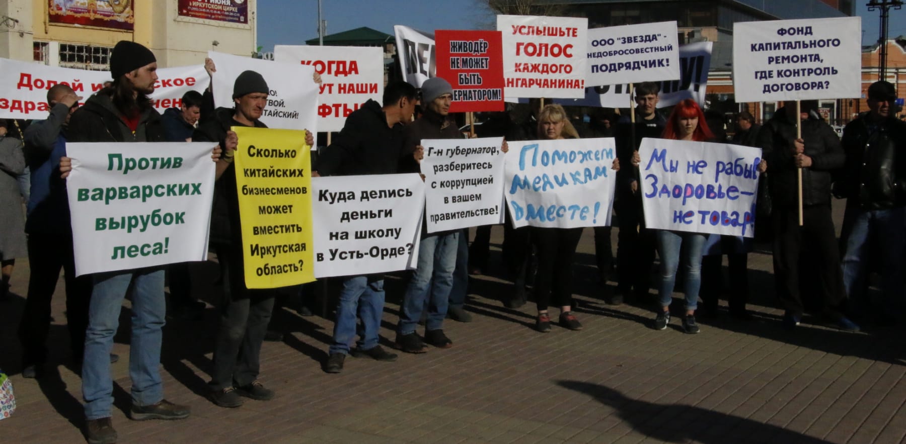 «Красный госплан - красивый обман», «Левченко, не умеешь - уходи!», «Такой губернатор нас погубит!». Жители Иркутска, Ангарска, Усолья-Сибирского, Черемхово, Иркутского района собрались 23 апреля на митинг. Основное требование - отставка губернатора Иркутской области Сергея Левченко. По мнению митингующих, глава области допустил хищническую вырубку лесов, привёл к коллапсу систему здравоохранения, поощряет китайскую экспансию в экономику региона, способствует коррупции в сфере ЖКХ. «Зачем Сергею Георгиевичу власть? Я думаю, что только ради денег», - заявил один из участников митинга.