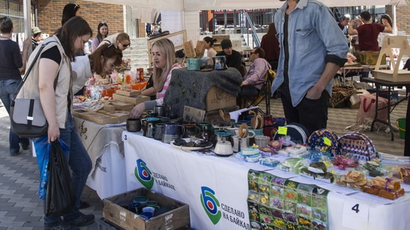 Под куполом сравнительно небольшого восьмиугольного шатра уместились прилавки 25 продавцов. Стенды и столики ещё десятка участников ярмарки стоят чуть поодаль. Большинство лиц знакомы – это «выпускники» Школы экологического предпринимательства и участники предыдущих ярмарок «Сделано на Байкале», которые фонд «Возрождение Земли Сибирской» проводит при поддержке En+ Group. На сей раз мероприятие проходит в «Иркутских кварталах» – новой точке торговли в центре города.