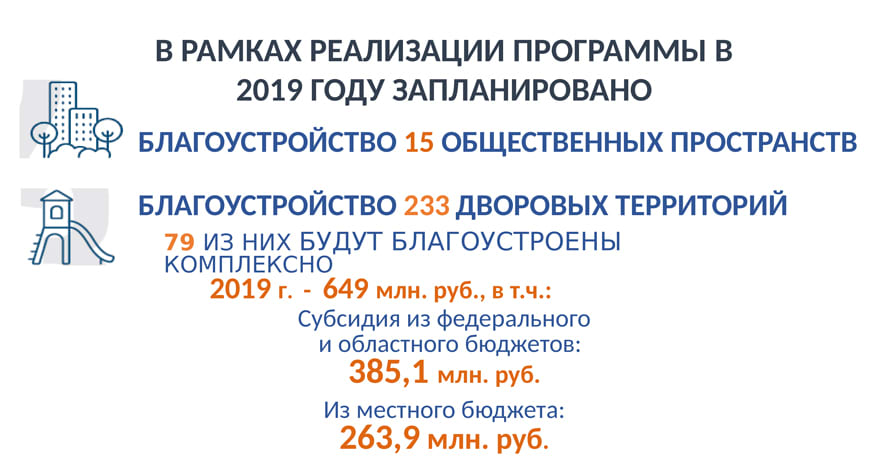 Благодаря тому, что руководство города находится на хорошем счету в профильных федеральных ведомствах, растёт финансирование благоустройства городских пространств. В нынешнем году поступления из федерального центра увеличились в полтора раза по сравнению с прошлым годом. На обновление дворов и обустройство скверов из муниципального, областного и федерального бюджетов запланировано 649 миллионов рублей. Это на 16% больше прошлогодних объёмов.